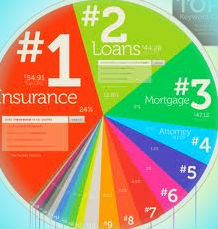 When we type a word into google, we generally don’t think about how much companies pay to ensure that word generates their ads at the top of the search results.  Thanks to a study conducted by Wordstream, a company whose software helps users create search engine marketing campaigns, we now know which keywords garner the highest costs per click (CPC for those in the know) in Google AdWords. For over a decade Google’s AdWords solution has allowed companies to create ad campaigns on google’s search results and participating websites and bid on which keywords lead users to those campaigns.  Considering advertising makes up 97% of Google’s total revenue, or 33.3 billion dollars a year, selling these keywords is an integral part of Google’s business model.